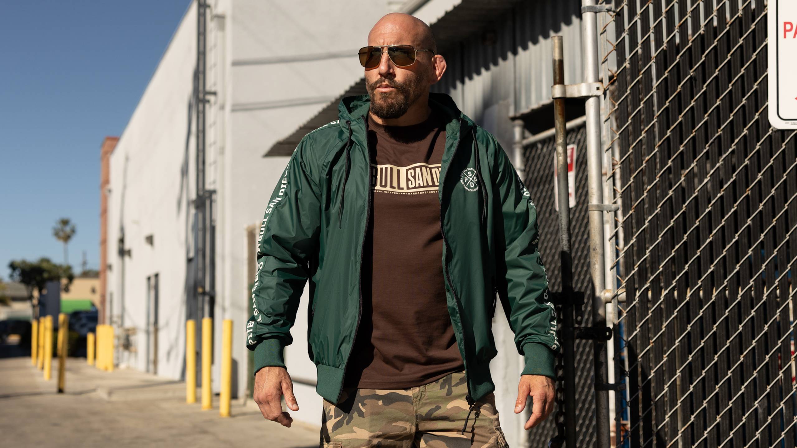 - żakardowe lampasy z napisem PITBULL SAN DIEGO na całej długości rękawów